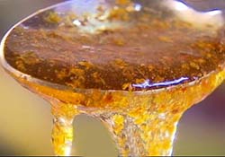 桂花釀的桂花採用中南部高級的黃金桂品種,儘管成本比中國的還要高但我們還是堅持採用台灣貨,經過烘培過的黃金桂花,陸續倒入滾燙的麥芽中,過程中必須不斷攪拌寸步不離,一次次的計算中知道四斤的桂花可以釀出三大桶釀。這種數十年累積的經驗判斷可以充分的將桂花的香氣完美的融合到麥芽中,這種幸福的味道不是加了香精的商品可以比擬的。