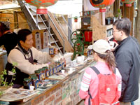 不一會兒黃先生指道:老闆你們貴店也有販售桂花釀,當再度的想泡桂花茶給黃先生試喝時,他說著:喔!不用了,當下我也覺得意外,問黃先生花茶好喝耶!黃先生說:不錯!但我想你若是願意開一瓶花釀,讓我品嚐原味,搞不好我就有80%向你買的意願了。當然,我回問為什麼?黃先生才向我表白,他提出,來南庄老街幾乎店家都是泡花茶請遊客試飲,喝了就買,我就是如此,來此地三次買了二次不同包裝的花釀,為什麼瓶內的成分都是一樣的,黃先生納悶的說著:因為沸騰的開水容易把裡面標示不明的成分給稀釋掉,我吃不到它的原味,之前買的沾上水果吃時宛如勾芡物,滑滑的合成口感,不敢領教,原因就是如此....